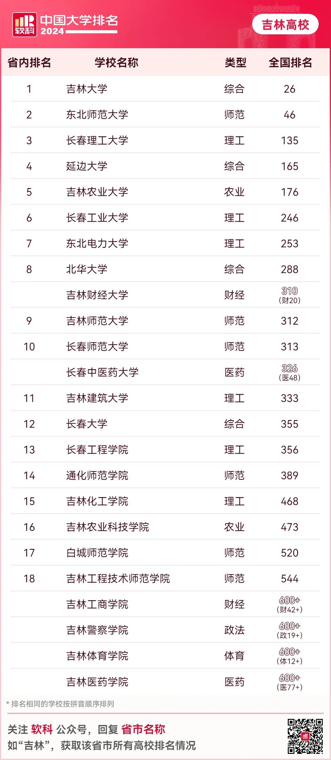 吉林省还有很多高校可在排名图中查看,都很不错,推荐给喜欢吉林的朋友们。