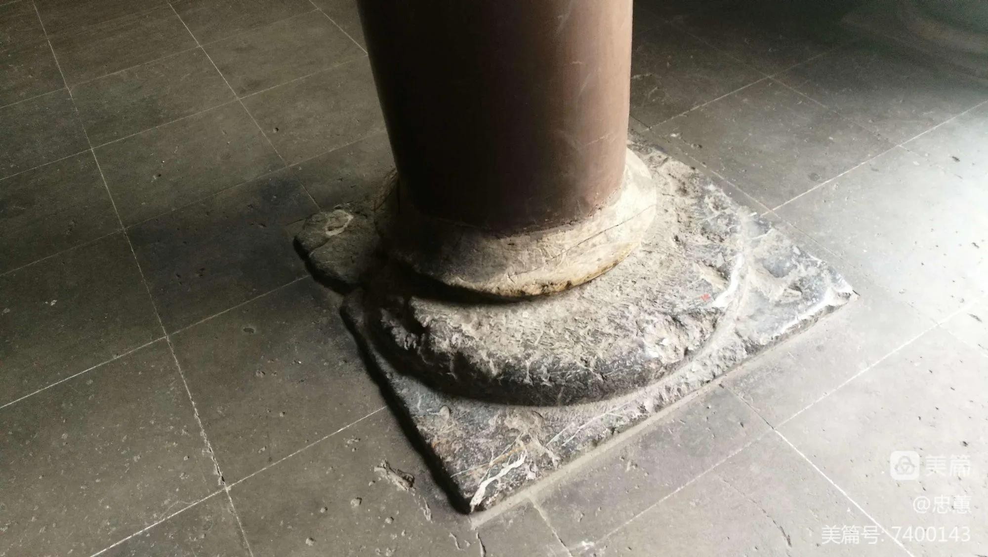 有一年扬州发生了地震,这个柱子被震得移位了,但房子巍然不动。