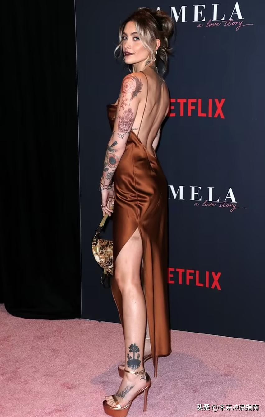 周一,迈克尔·杰克逊的独女,24岁的帕丽斯·杰克逊 ( Paris Jackson ) 在 Netflix纪录片《帕米拉:爱情故事》(Pamela: A Love Story ) 的洛杉矶首映式上身着古铜色性感缎面吊带裙,露出性感美背,惊艳无比。