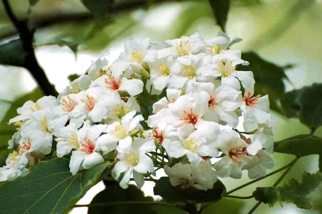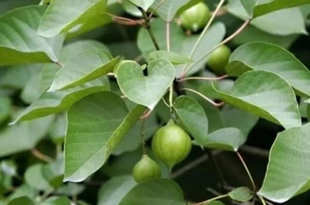 植物形态:落叶乔木; 树皮灰色,平滑。单叶互生;叶大,卵圆形至心脏形,通常全缘或有时1-3裂。花于春季先叶开放,单性,雌雄同株,排列成顶生圆锥状聚伞花序;花白色,带红色条纹。朔果呈核果状,近球形。种子8-5枚,内含丰富的胚乳及油分。开花期4月;果熟期9-10月。