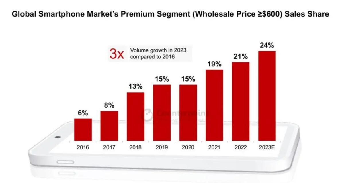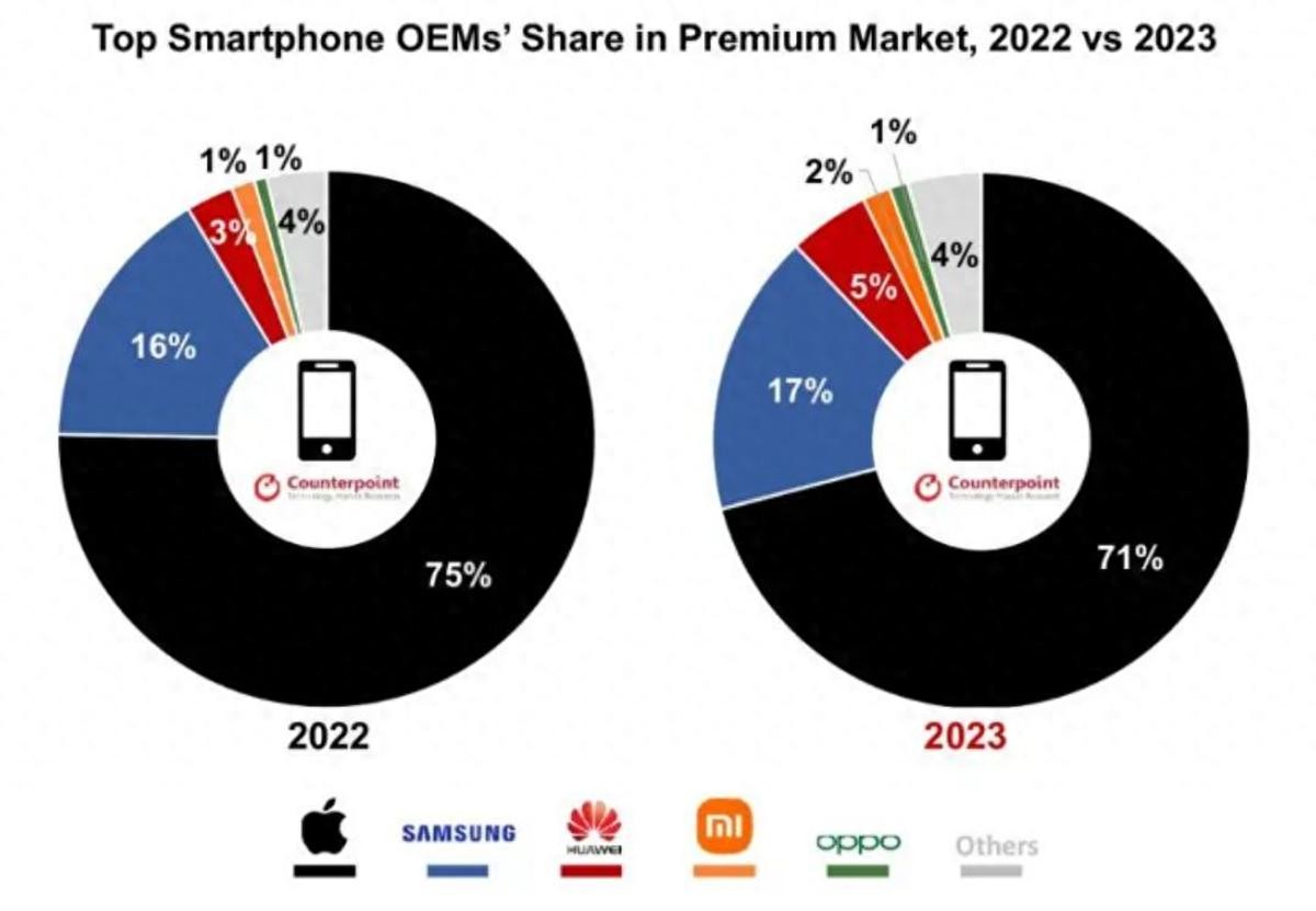 日前,市场调查机构Counterpoint Research公布了最新的高端智能手机销售情况分析报告,从报告可以看出,高端智能手机越来越受到热捧,同时也产生了最新的高端智能手机品牌排名:苹果第一、三星第二、华为第三、小米第四、OPPO手机第五。
