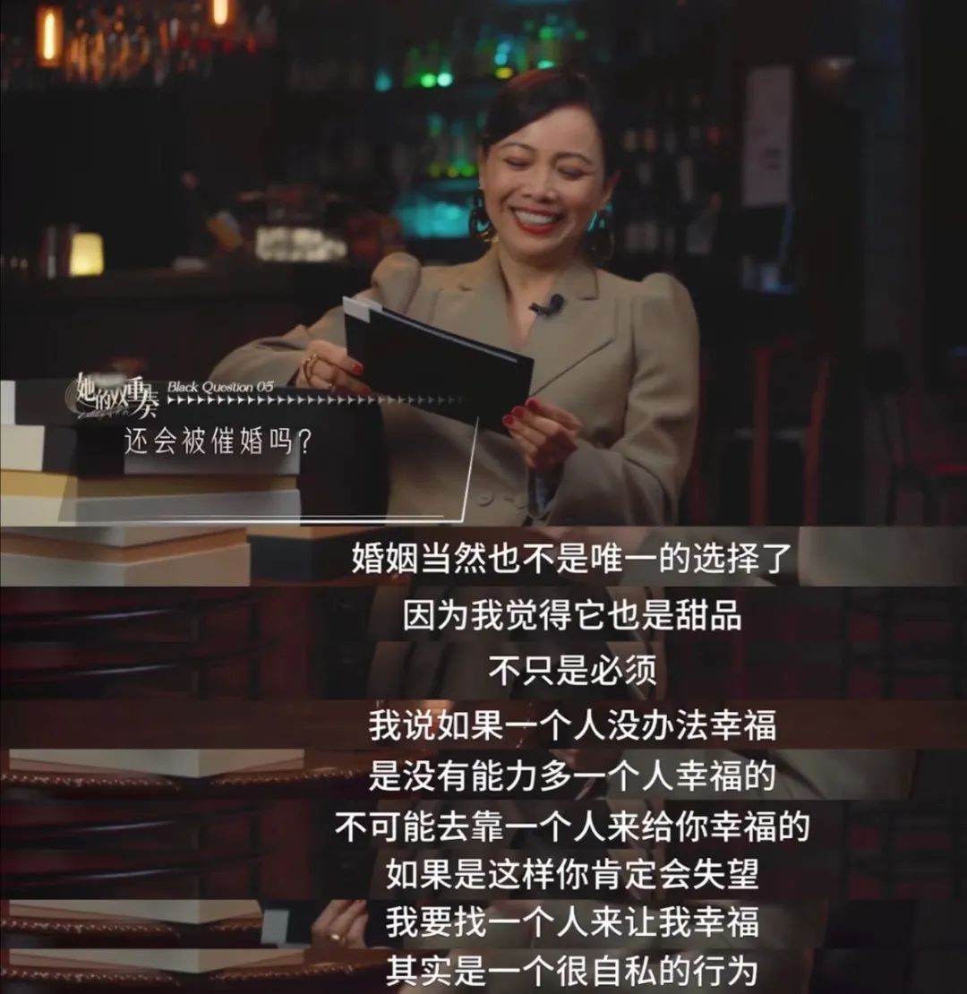 事到如今,事业的成功、人生的自洽大概弥补了邓萃雯内心对爱情的焦渴,曾经对爱情如痴如狂的邓萃雯,已是情关过尽,爱情早已不是她人生的必需品,婚姻更是有无都好,重要的是自我的完整与完成。