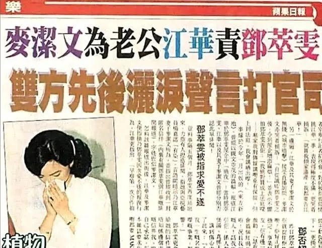 1996年前后,这场婚外恋一经曝出,江华立马与太太麦洁文统一战线,面对广大媒体与记者的质问,双双把矛头直指邓萃雯。