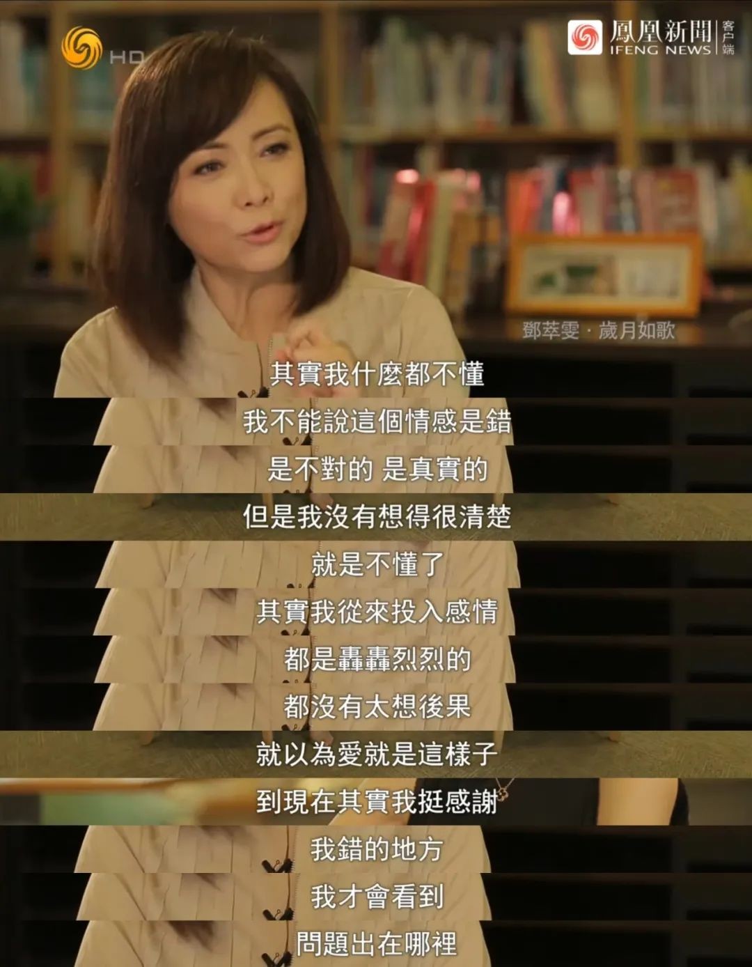 多年后回顾与万梓良的恋爱,邓萃雯甚至觉得那不是爱情,只是一个小女孩对于成熟男人的依赖与迷恋,渴望爱情能够填补内心安全感的缺失。图源水印