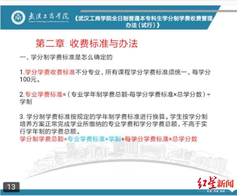 关于学生质疑“学分学费收费标准不能高于80元每学分”,工作人员表示:“学生发的文件截图其实是2015年的,后期有没有修改不确定,但我们这边(武汉)大部分都是100元每学分。”她称学校的学分收费标准在物价局备过案,不存在学生说的乱收费,可能是没有跟学生介绍清楚,或者是学生没有理解清楚。