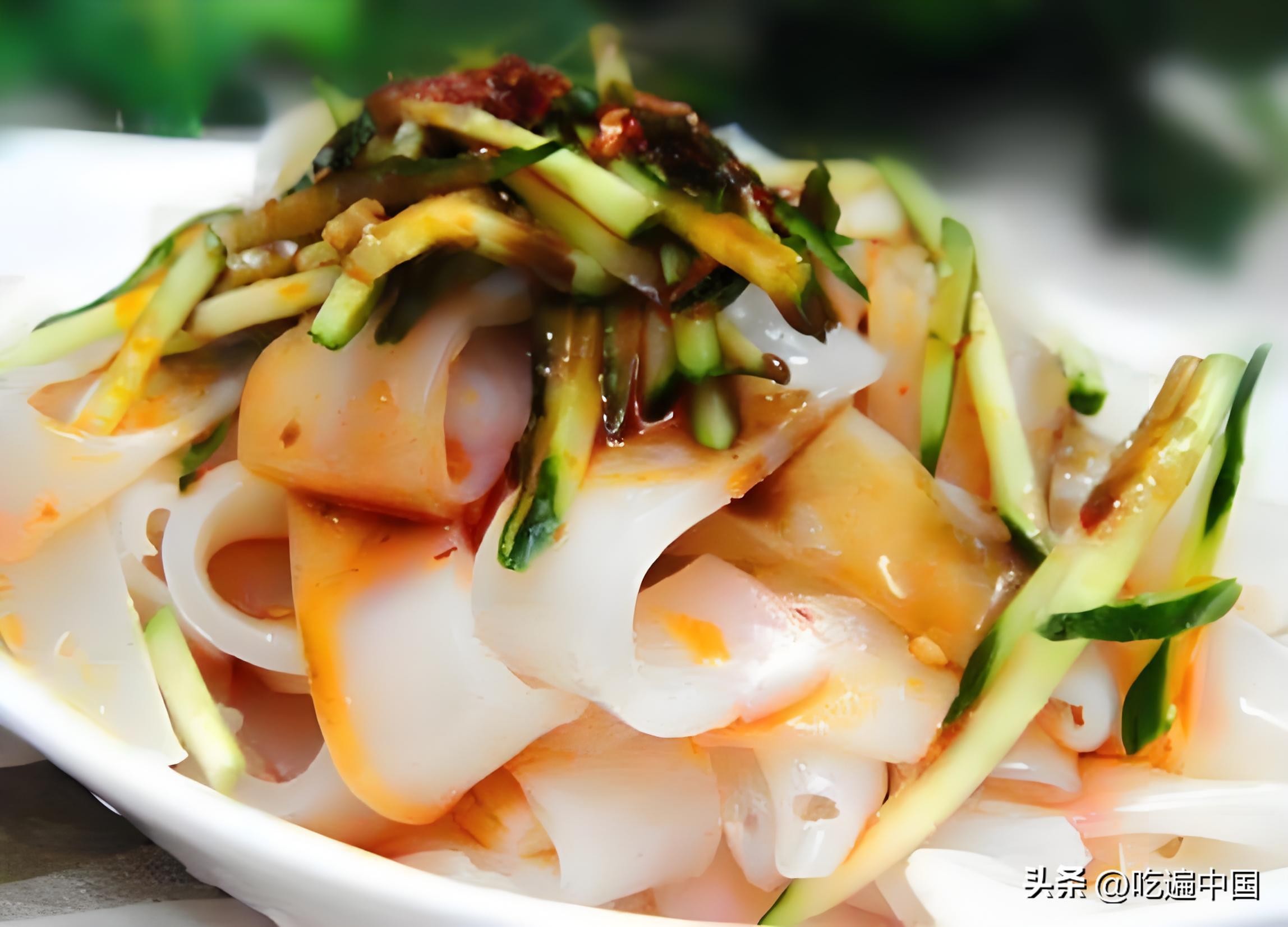 凉皮是一种源自陕西的传统美食,属于擀面皮、面皮、米皮、酿皮的统称。凉皮以其独特的制作工艺和丰富的口味而闻名,是中国北方地区广受欢迎的天然绿色无公害食品。