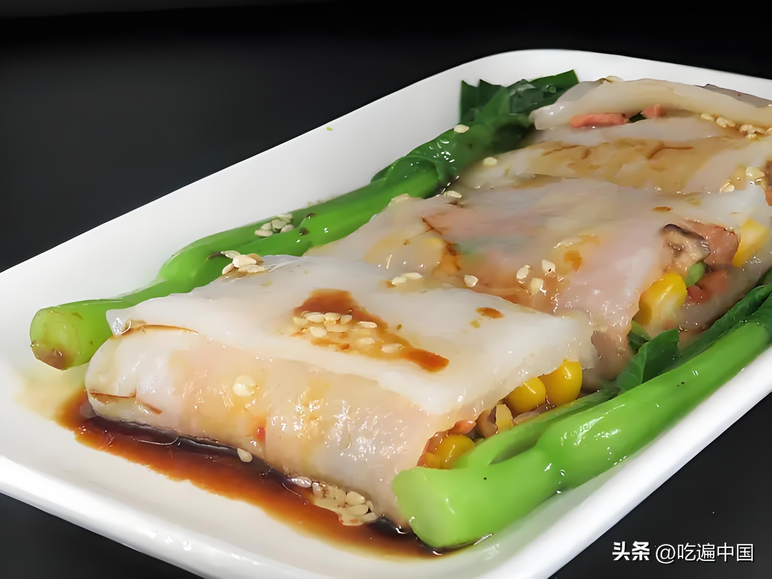 现在肠粉是广州茶楼、酒家早茶夜市的必备之品。制作过程简单却考究:将米浆淋在特制的竹篮中,打入鸡蛋,铺上肉馅或虾仁,蒸熟后淋上香浓的酱汁。肠粉薄如蝉翼,口感滑嫩,配上酱汁后更加美味,是早餐或宵夜的绝佳选择。