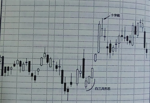 注:由于出现红三兵形态时行情已经经历了一波上升,在短线上可能已经表现为超买状态,可以观察一下震荡指标的状态,若是有调整一般情况下以第一根阳k或第二根阳k作为支撑位。在出现该形态时若出现较长上影线,可能会构成前方受阻状态,这时多头应该小心应对,尤其是在高位出现该形态时应不再作为看涨依据,而是要警惕风险的发生。