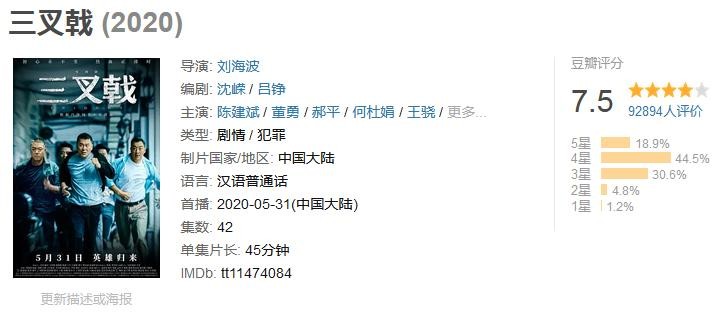 由陈建斌主演的《三叉戟》,就是另一个画风。