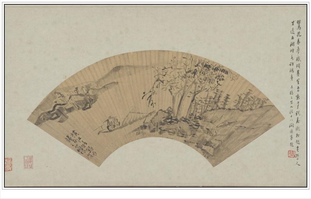 《山水图》扇页,明,徐渭绘,金笺,墨笔,纵15.8厘米,横47.4厘米。北京故宫博物院藏