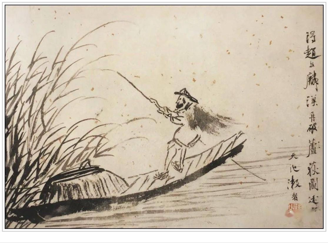 款识:青藤山人图镜湖渔者。钤印:天池山人(白文)