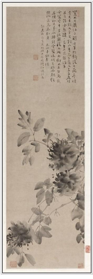 《花竹图》轴 纸本水墨纵337.6厘米横103,5厘米台北故宫博物馆藏