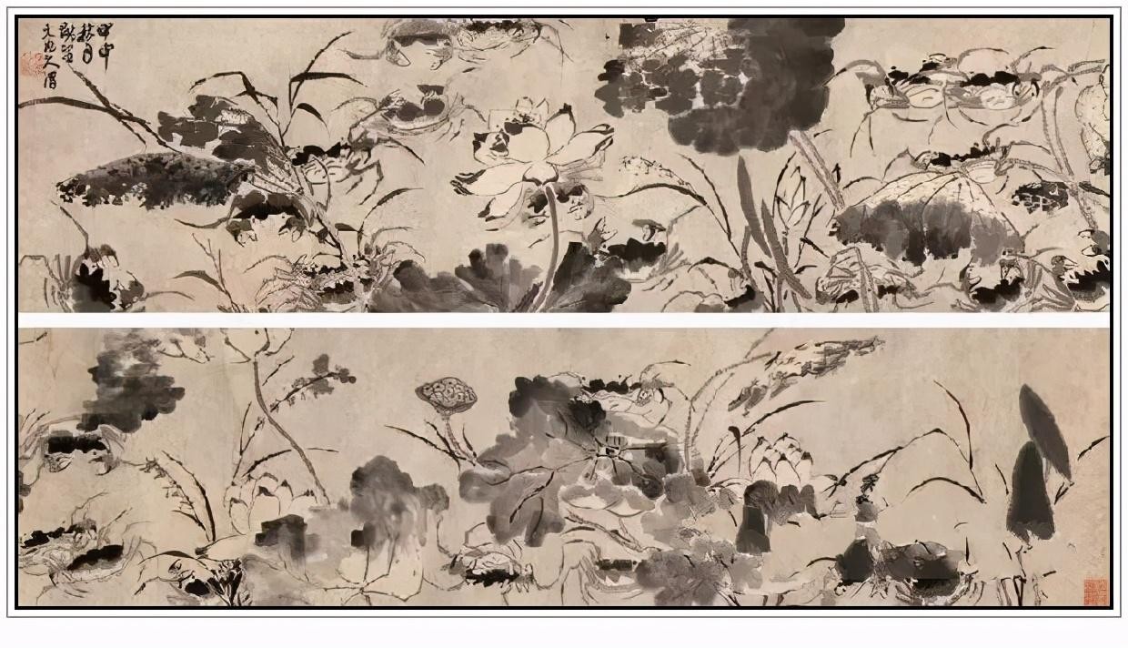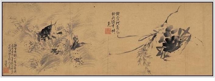 明徐渭蟹鱼图纸本 墨笔28.7cmx98cm现藏于北京故宫博物院