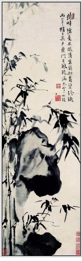 《竹石图》立轴 纸本墨笔纵122厘米,横38厘米广东省博物馆。