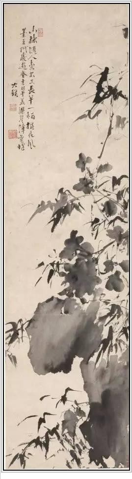 《梅花蕉叶图》轴,明,徐渭绘,纸本,墨笔,纵133.7厘米,横30.4厘米。北京故宫博物院藏