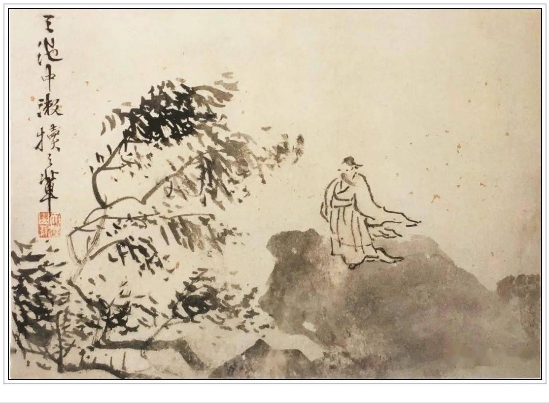 作为明代花鸟画坛独领风骚、以大写意画法见称的徐渭,留下的人物画迹并不多见。他所画的人物有诗人,有隐士,有观音,有儿童,虽然笔墨简练,但形象生动,神韵自存。《驴背吟诗图》中并无徐渭自题或钤印,画幅上仅有清初书画鉴赏家笪重光、张孝思的两段鉴定文字,左上为“徐田水月驢背吟詩圖,笪重光鑒定”,右下为“以書法作畫,古人中多見之。此畫雖無款識,爲徐文長先生筆意靡疑。懶逸張孝思鑒。”自此,此图被公认为徐氏真迹。