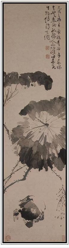 显而易见,此画并非一般意义上爱荷颂荷的画作,而是借荷抒发一种不如意的情愫。因而,画中的荷花荷叶并无美好的形象和令人愉悦的笔墨。然而,画作另有一种奇崛之美、跌宕起伏之节奏美和真实的艺术感觉诉求之美在焉。其实,画中的荷正是徐渭自己的化身,空有芬芳满腹,却生活在动荡的环境之中。正是这样的矛盾和痛苦成就了艺术上一种无可奈何的壮美,读画知之。