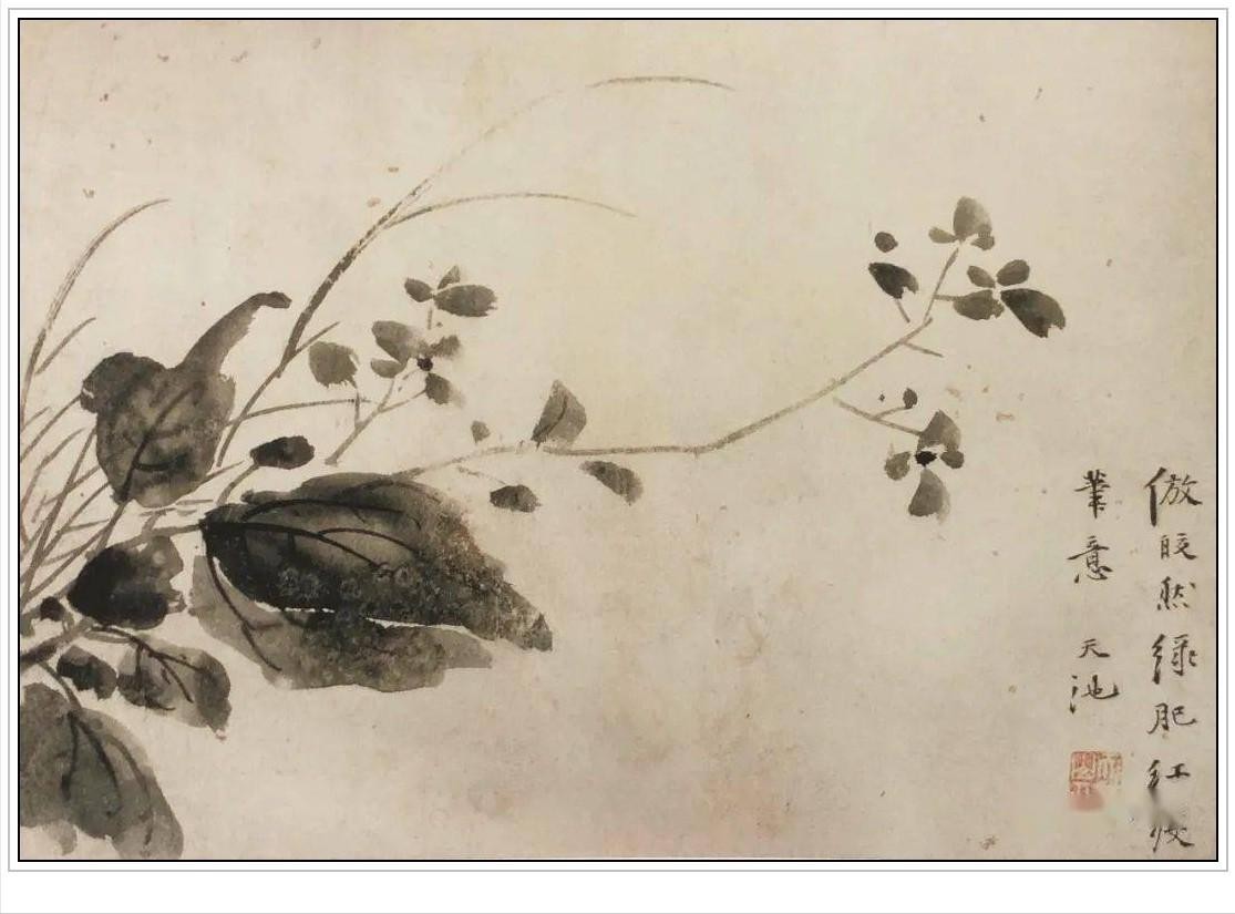 款识:仿皎然绿肥红瘦笔意。天池。钤印:天池山人(白文)