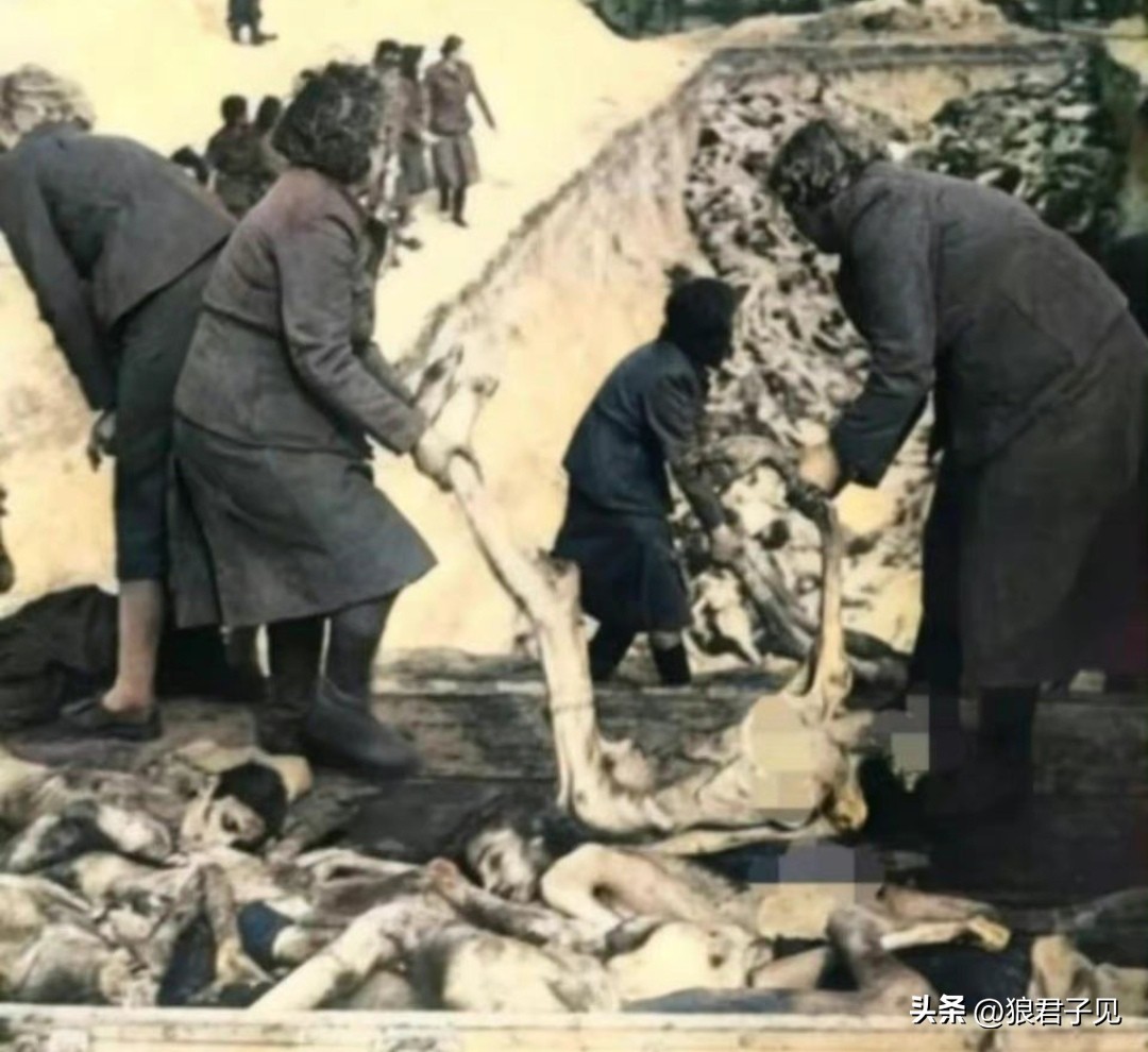 1945年4月15日,英国部队解放了贝尔根·贝尔森集中营,在数个万人坑中,发现的遗体、遗骨就有大约6万具,堆满尸体的万人坑,令人看了触目惊心。