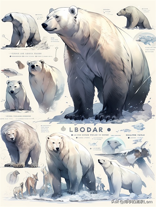 10. 北极熊(Polar Bear):北极熊是北极地区的顶级捕食者之一,拥有厚重的皮肤和锋利的爪子。它们以强大的游泳能力和敏锐的嗅觉在海洋中狩猎猎物。