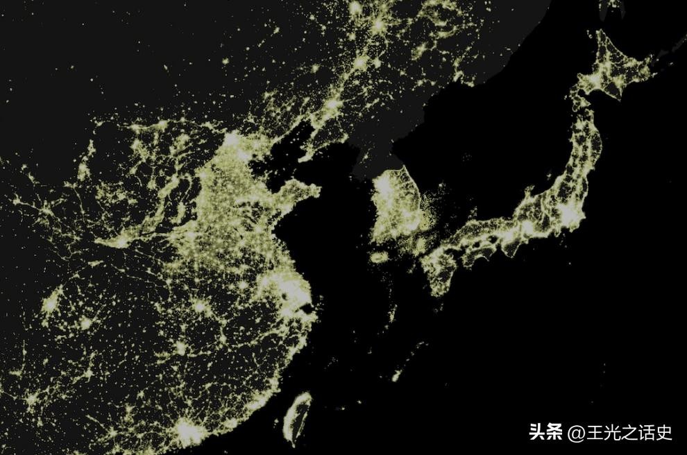 东亚夜明度直观图,夜间灯光明亮度直接和经济发展指数挂钩