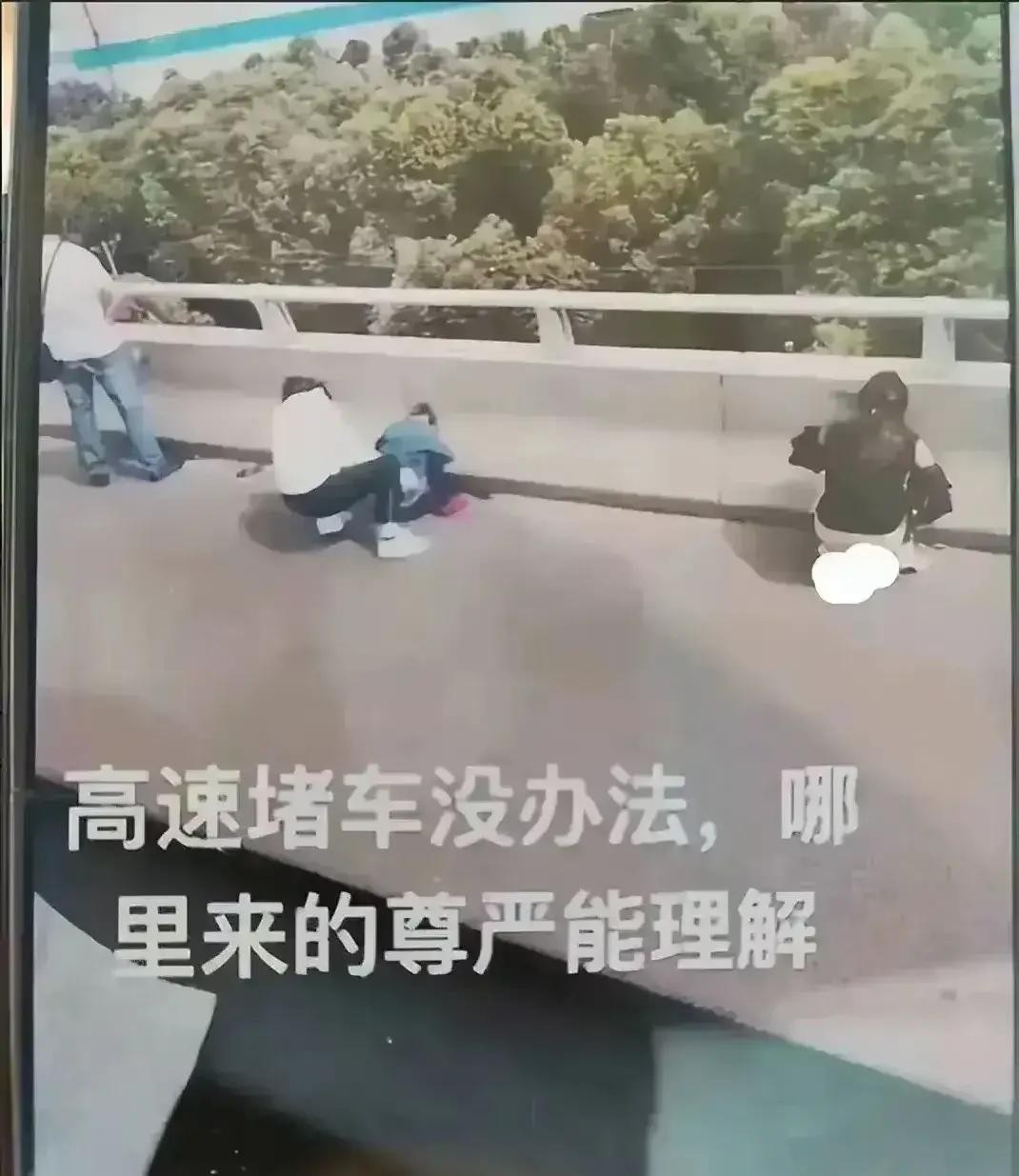 高速堵车:男女都在大马路解决内急,真是车水马龙啊!