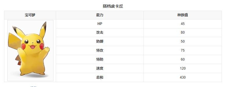 由于皮卡丘仅仅是二阶段的进化,所以皮卡丘的种族值只有320点,不过这只是普通皮卡丘的数值,小智的皮卡丘有羁绊加成,官方设定是430点种族值,但是在八大师赛的黑色雷电皮卡丘种族值肯定超过了这个范畴,具体是多少无法估计,毕竟这玩意讲的是唯一。