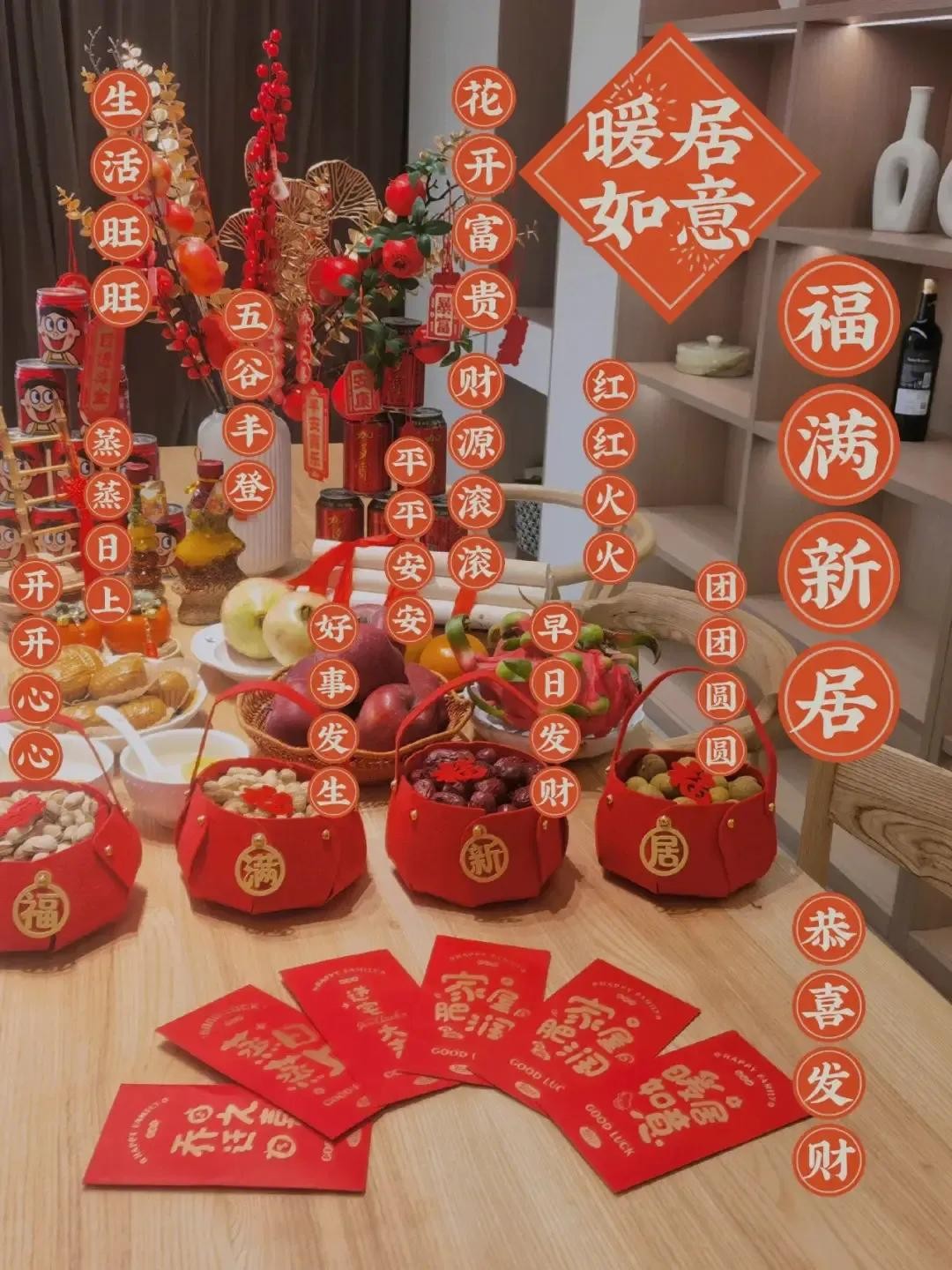 11.红包(以恭喜发财、乔迁大吉字样封包为好,金额10至20元为宜,数量根据参加入宅活动的人数而定,亦可多备一些备用);