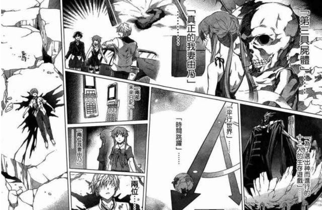 二周目由乃本身也是个病娇,亲手杀死了自己的父母,并将其暴尸笼内。一周目的由乃穿越后,将二周目的自己杀死,并埋尸后院。这也就是剧情中在后院发现第三具尸体,并且DNA化验和由乃的基因一样的原因,因为本来就是同一人。也就是说,参加二周目成神竞争的由乃是一周目世界的时空神,这场游戏对其他人本来就是不公平的,活下来的注定只有雪辉和由乃。