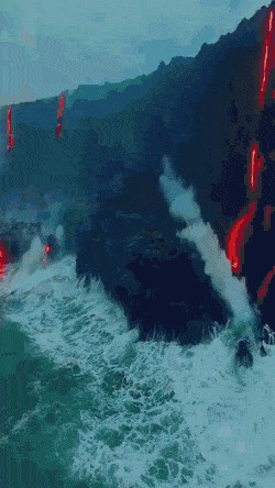 岩浆流入大海的样子