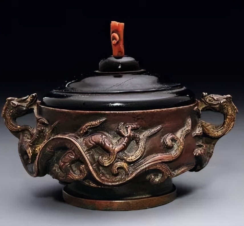 铜鎏金龙纹簋式香炉