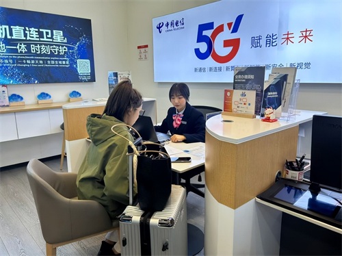 中国电信成都分公司天府国际机场营业厅为旅客提供通信服务