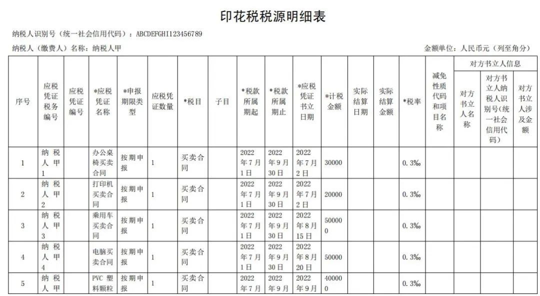 (一)纳税人应当根据书立印花税应税合同、产权转移书据和营业账簿情况,填写《印花税税源明细表》,进行财产行为税综合申报。