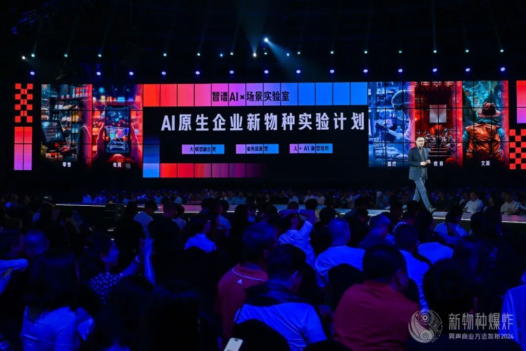 MaaS提供AI原生土壤,长出AI原生企业。在智谱大模型开放平台bigmodel.cn上,每天有无数AI 原生企业正在诞生。成为AI原生企业,是我们必须拥抱和不可错过的时代窗口。基于此,场景实验室和智谱AI在新物种爆炸2024的现场,共同发起「AI原生企业新物种实验计划」,用有场景思维的MaaS助力企业AI化。我们也将企业的AI化转型细化为三个进程:大模型融合度,开始在业务中应用大模型;业务流重塑,大模型是核心业务的核心组件;人+AI新型组织,真正成为Model as a Business,将企业经营过程、人的经验沉淀为模型,彻底的AI经营方式。首批我们将聚焦零售、电商、医疗、教育、文旅五大行业,打造AI原生企业新物种的行业标杆。