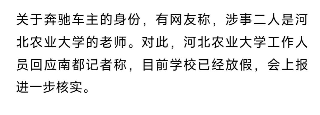 甚至有网友扒出,奔驰男女竟然是河北农大的老师,此举让河北农大也受到了牵连。