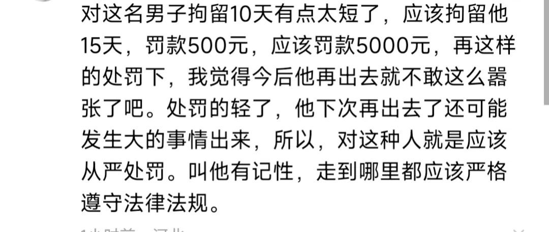 后续的处理结果也出来了,行政拘留十天,加罚款500,说重也不重,说轻也不轻。