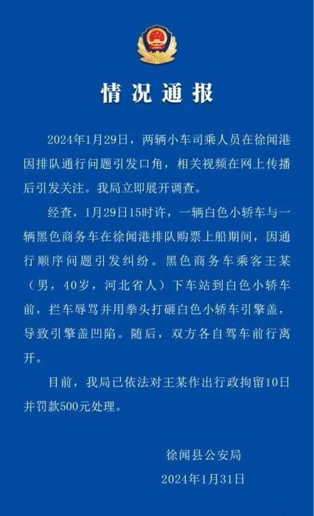 这个事件发生在1月29日,地点在湛江徐闻港,当事人是一位奔驰男和一位女车主。