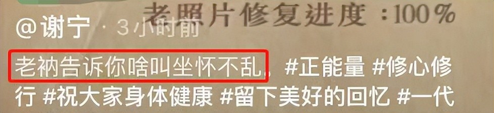 那天,沉寂许久的谢宁,在社交平台上晒出了一张图片,并配文:老衲告诉你什么叫坐怀不乱。