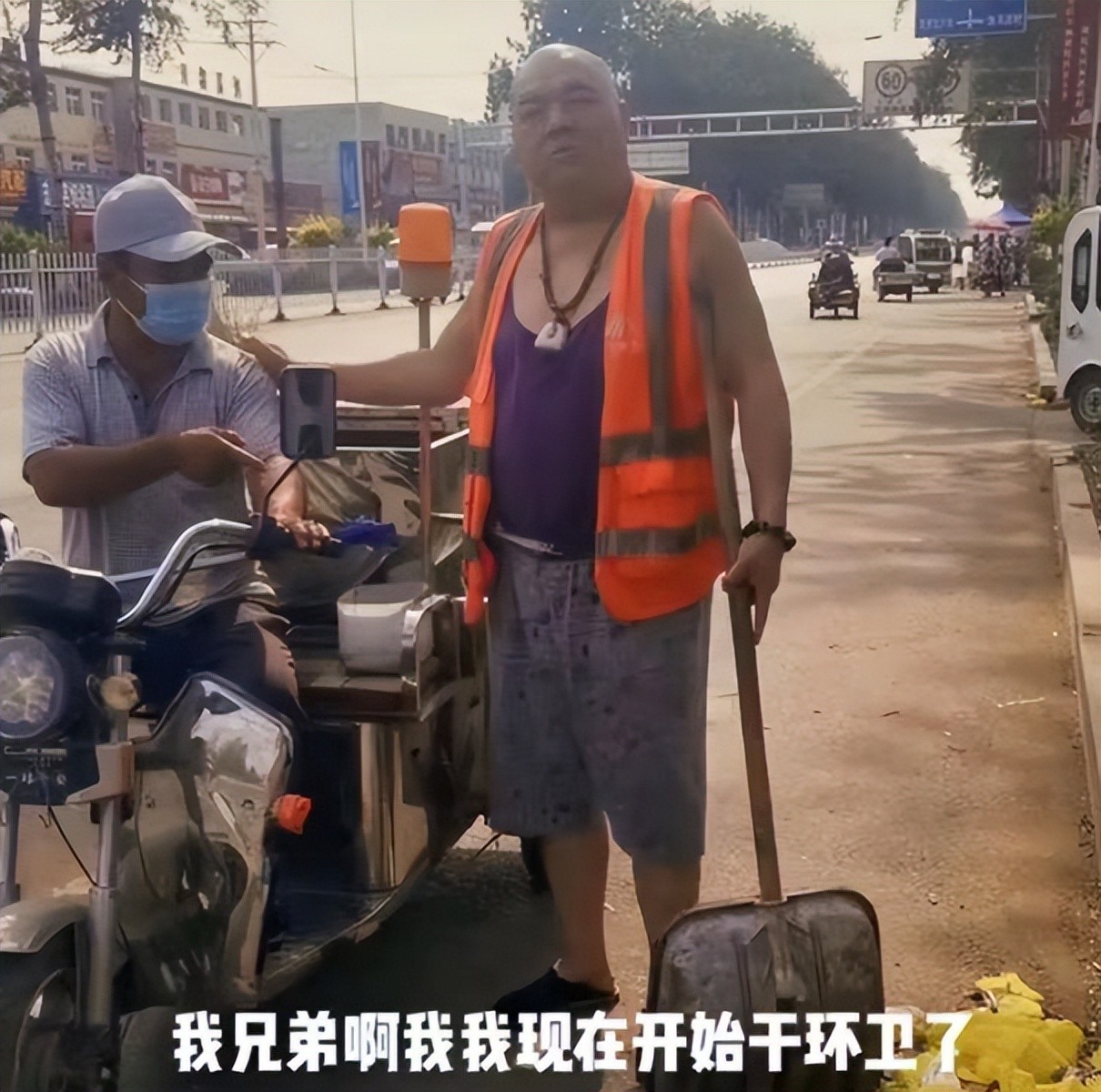 可还不等网友反应过来,谢宁又穿着橙色小马甲,拿着扫把、垃圾斗出现在街头。