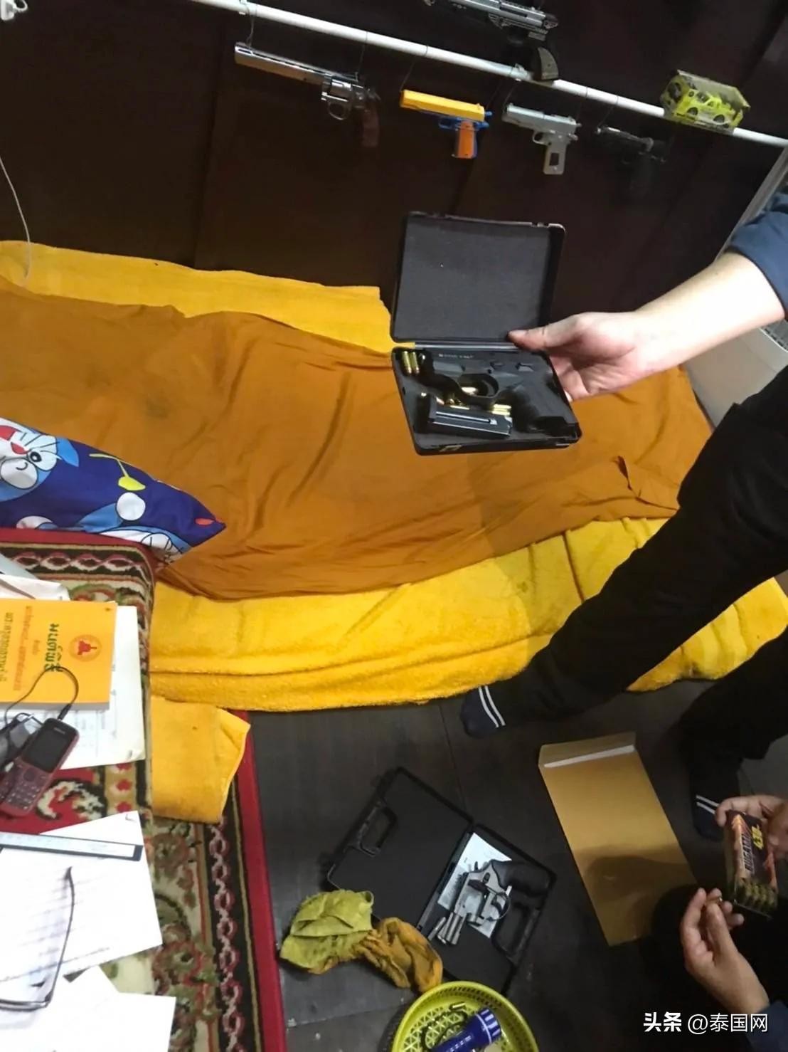 日前,泰国大城府警方携法院逮捕令,对Khok Muang镇某寺一名僧人实施逮捕,因该名僧人“未经允许私自制造并持有枪支弹药”,此外警方还缴获近10把枪和子弹等其他类型赃物。