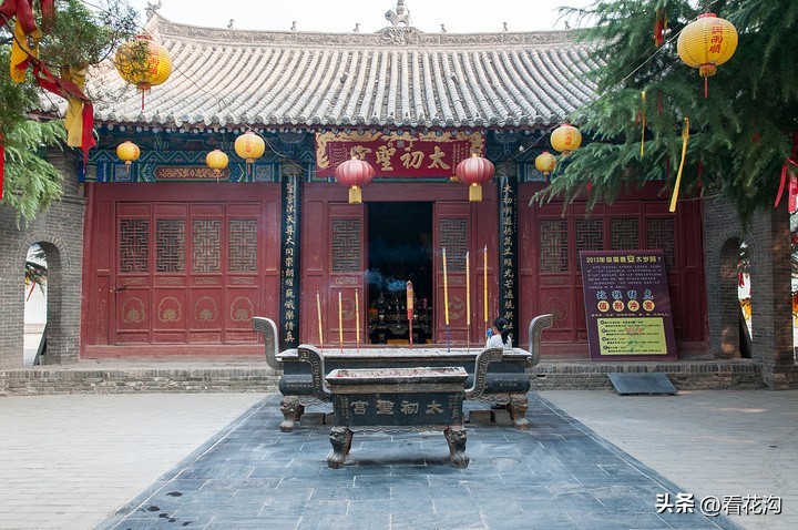 36.灵宝市的历史遗迹-灵宝太初宫。位于函谷关东城门右侧。传说,尹喜迎候老子到函谷关,行以师礼,恳求老子为其著书,老子便在此写下了《道德经》五千言。老子著经的地方修筑了太初宫,曾是一座道观。太初宫为殿宇式古典建筑。殿脊和山墙檐边上塑有麒麟、狮、虎、鸡、狗等珍禽异兽,神形兼备。殿顶飞梁纵横,椽檩参差,虽然屋架复杂,但却自成规矩,殿宇宽阔,中无撑柱。史载,太初宫始建于西周。现存太初宫主殿建于唐以前,元、明、清各代均有修葺。庙院现存石碑两通,一通立于元大德四年,一通立于清顺治年间,上面都记载着老子骑青牛过函谷关的故事。