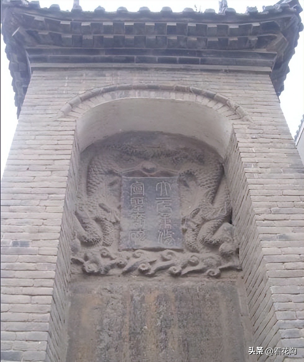 33.灵宝市的历史遗迹-邵公碑楼。位于灵宝市区东南17公里苏村乡东里村,清道光十五年。立。碑文记述了邵自省、邵自强兄弟二人为颂父亲邵全仁资宏量大、恤孤赈贫的功德所立。《灵宝市文物志》载:邵公碑楼为砖砌庑殿式建筑。楼顶由三座仿古屋脊组成,中间的一座较高,两边的较低,均为庑殿顶式建筑。四条垂脊高高翘起,脊上饰有立兽。三座檐下均有砖雕图案,中间福禄寿图,左边富贵图,右边松鹤图。内嵌石碑一通,碑高1.03米,宽0.70米,圆额。石碑刻“邵公神道碑 大清道光十五年立”,背面刻“邵公神道碑记”。碑体有20幅雕花图案,有 “岁寒三友”、“五福临门”、“松柏长青”、“富贵牡丹”、“龙飞凤舞”、“鹤鹿延年”。