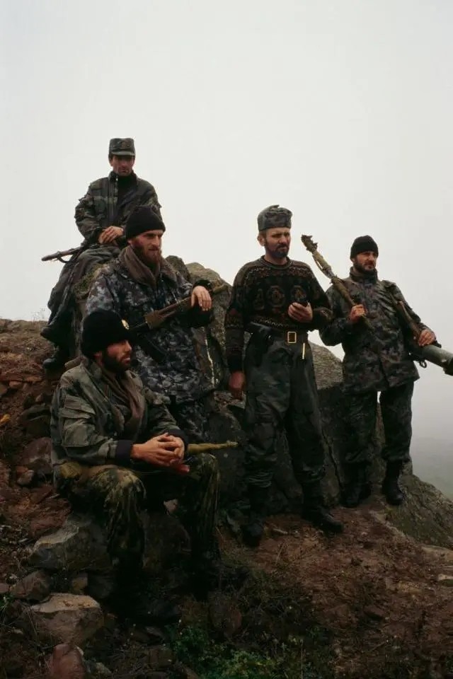 车臣武装分子,大部分还穿着库存的苏联军服,没有佩戴标志