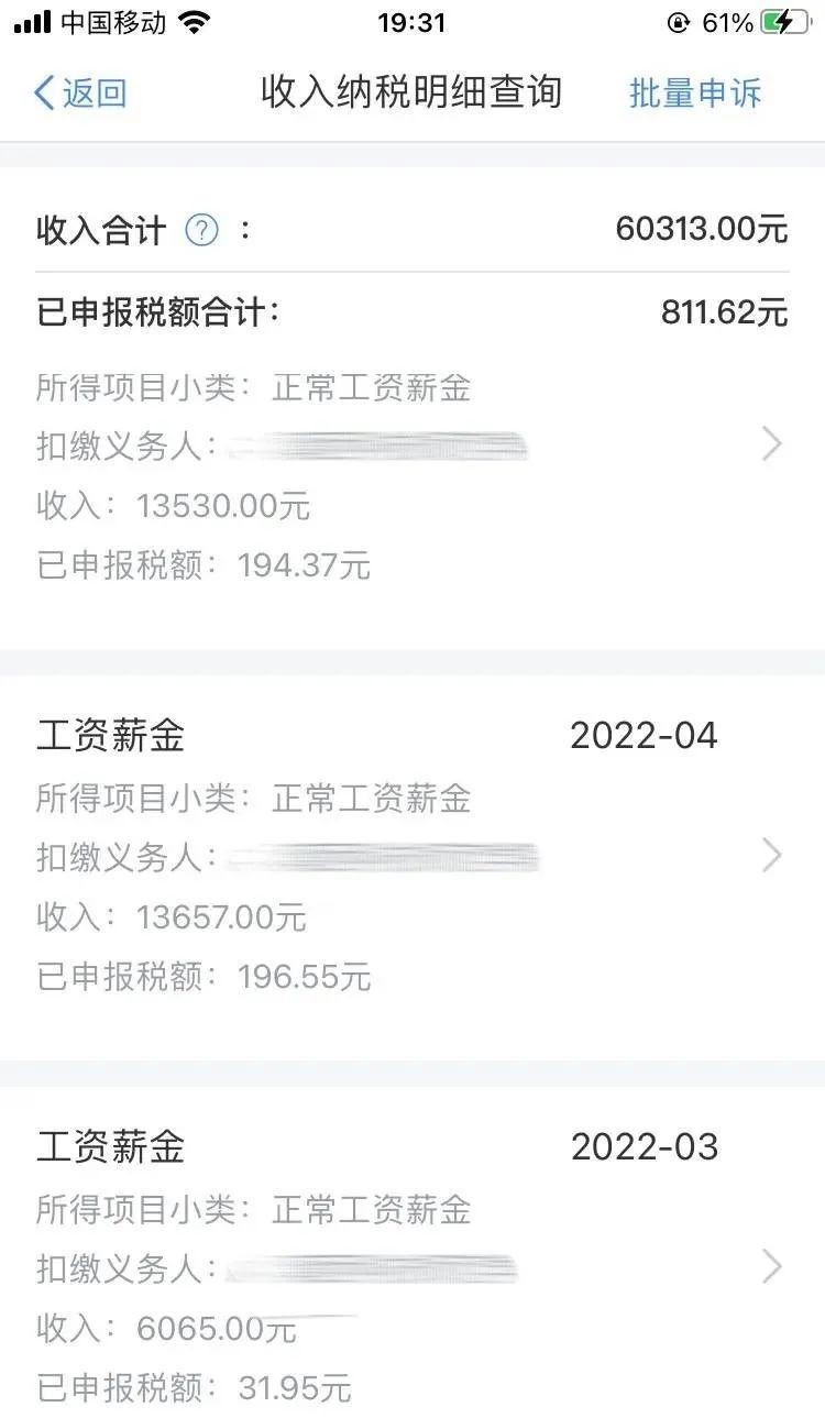 @匿名:说一下我的情况吧,硕士学历,云南地州某高校在编专任教师,今年3月才入职,第一个月没课时费所以工资比较低,一年有四个月工资比较低。公积金双边2500,这几个月收入如下: