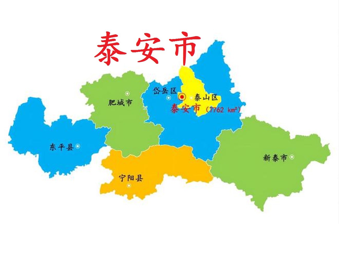 泰安市全市总面积7762平方千米 ,辖2个市辖区(泰山区、岱岳区)、2个县(宁阳县、东平县)、代管2个县级市(新泰市 肥城市) 。截至2022年末,泰安市常住人口540.1万人。