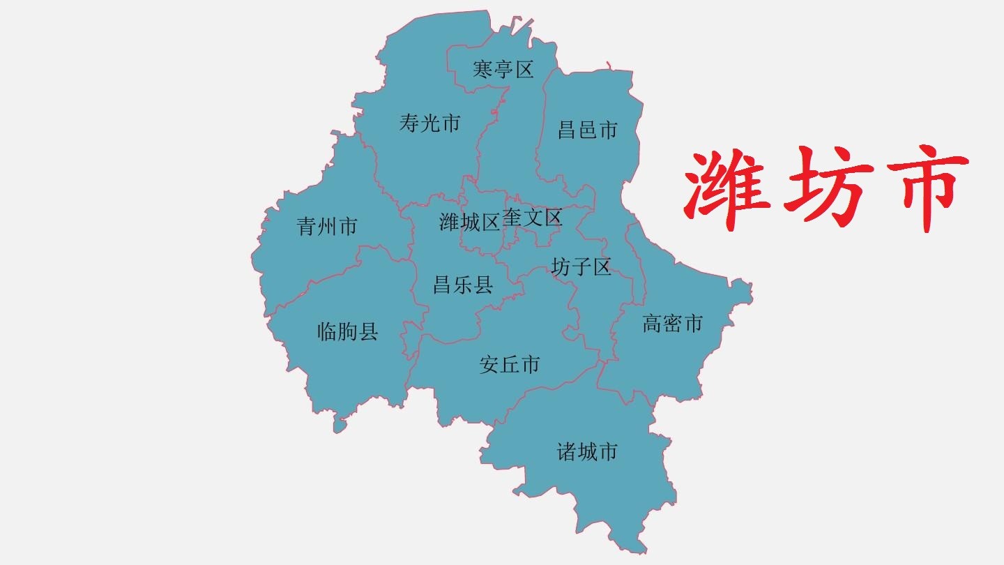 潍坊市,古称潍州,市政府驻奎文区。位于山东半岛西部,东与青岛市、烟台市连接,西邻淄博市、东营市,南连临沂市、日照市,北濒渤海莱州湾。