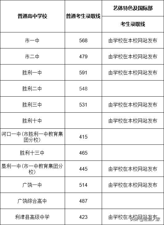 1.公办普通高中普通类考生报名资格线:主城区400分,新泰市390分,肥城市381分,宁阳县378分,东平县422分;