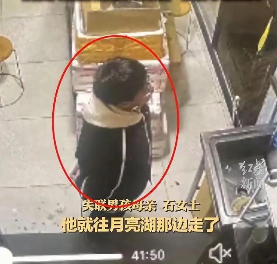 手里拿着刚买的鸡排,面带微笑朝月亮湖方向走去。没想到,这竟是孩子留给世界的最后影像。