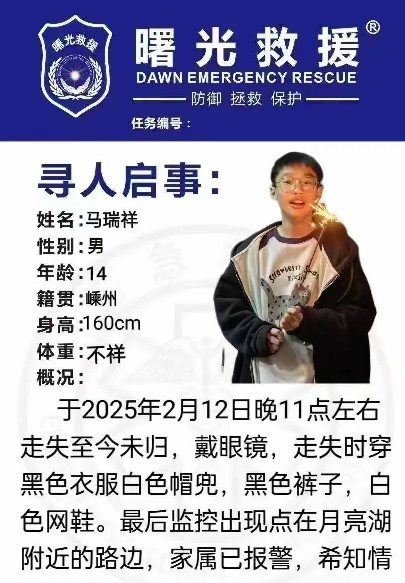 2025年元宵节后的第二天,当大多数家庭还在享受节日的快乐时,14岁的马瑞祥却在家中神秘失踪。2月13日晚,趁着父母外出走访亲戚的短暂时间,马瑞祥不见了。这件事如同一颗大石头掉进了平静的湖面,引起了巨大的波澜,让人好奇这背后到底隐藏着什么秘密。