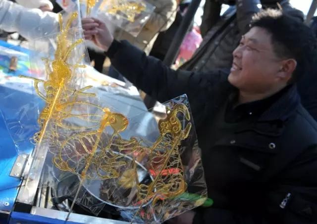 当然了庙会上少不了逛逛逛、买买买了,今天在皂河庙会上很多艺人也是带来了捏泥人啊、糖画啊、剪纸啊等等民间艺术。据了解,每年的皂河庙会都会吸引山东、河南、安徽几省的商贩、民间艺人到场。他们在庙会中展示的“木刀木剑红缨枪、桃猴玉兔青竹蟒、剪纸雕刻拨浪鼓、糖人泥哨小花棒”等精彩民间工艺,会让游客们不远千里而来。